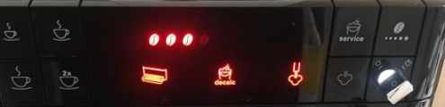 A. 커피콩 아이콘 3개, 스팀아이콘에 불이 들어오고 decalc 아이콘은 깜빡입니다.