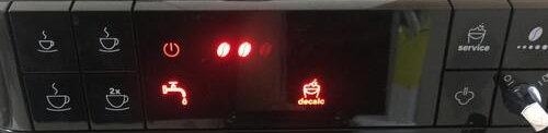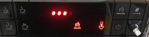 석회질 제거 프로세스가 모두 끝났습니다. 이제 커피를 추출할 수 있는 상태가 됩니다. decalc 아이콘의 불도 꺼졌습니다.