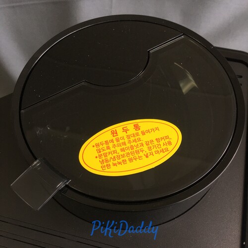 원두통에 원두를 넣습니다. 역시 뚜껑은 딸깍! 잠기는 구조가 아닙니다. 그냥 잘 닫아주세요. 원두는 한 번 채우면 6-7잔 드실 수 있습니다.