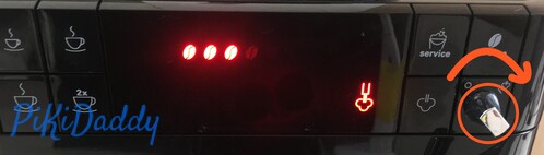 물통을 머신에 장착하지 않으면 수도꼭지 아이콘에 불이 들어옵니다.